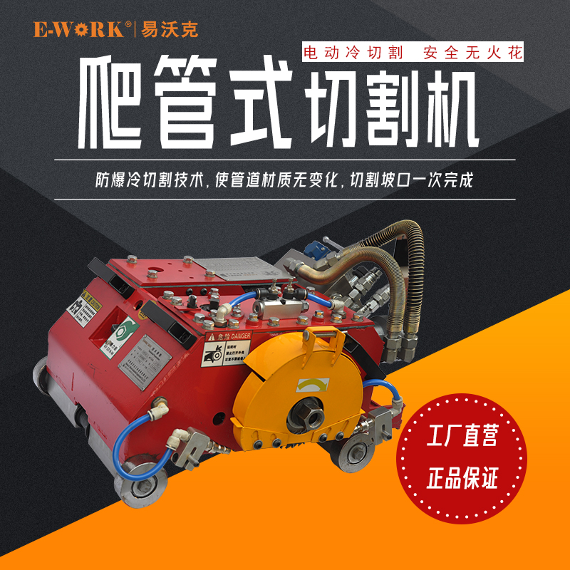 ERCGE11型電動液壓爬管式管道切割坡口機設備(爬管機)是E-WORK易沃克根據(jù)管道類服務行業(yè)市場及前景,結(jié)合本公司技術力量自主研發(fā)的管道加工設備。產(chǎn)品集輕便、準確、效率高及模組化設計于一身,充分考慮用戶的需求,是各種類型管道切割和坡口的理想選擇。爬管式管道切割坡口機設備(爬管機)是一種以液壓作為動力源,利用盤銑刀的切割原理,由液壓驅(qū)動切割、坡口刀具,先慢速通過螺紋絲桿進給把被切割管道切穿,通過遠程控制切割機器人使其沿管道圓周爬行一圈,完成整個過程管道的切割和坡口的自動化設備,可以加工外徑從6英寸(153mm)到72英寸(1829mm)不同類型的管道。