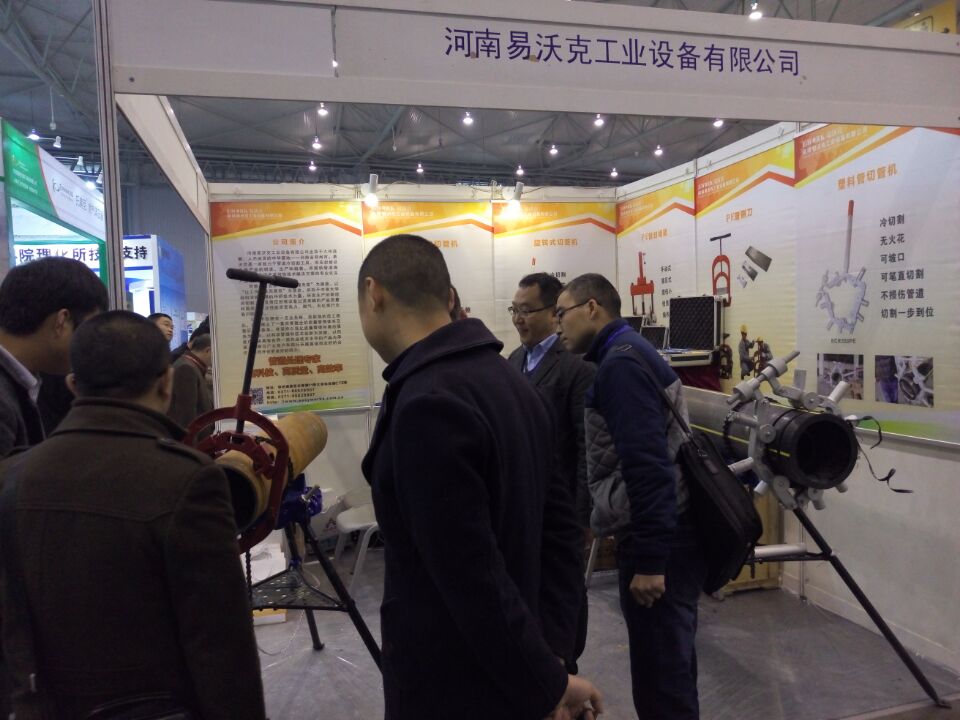 河南易沃克工業(yè)設(shè)備有限公司展位面前人頭攢動(dòng),異?;鸨?。對(duì)我司自主研發(fā)的管道冷切割工具喜愛(ài)有加。工作人員向在場(chǎng)人員講解展示鋼管和pe管冷切割工具。以及pe刮皮刀,管道帶壓封堵器。參觀人員交口稱贊。